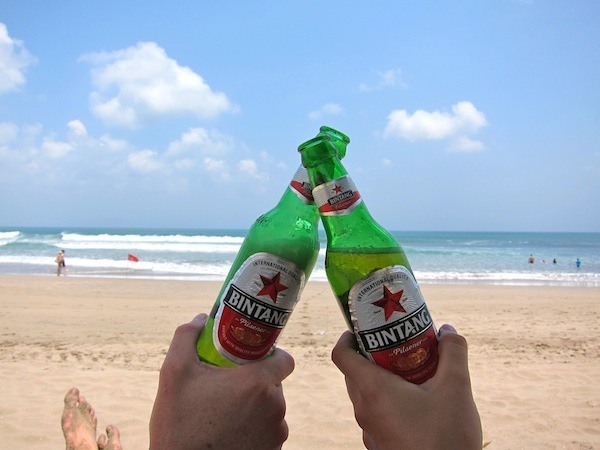 – Sipping a Bintang beer on the beach
